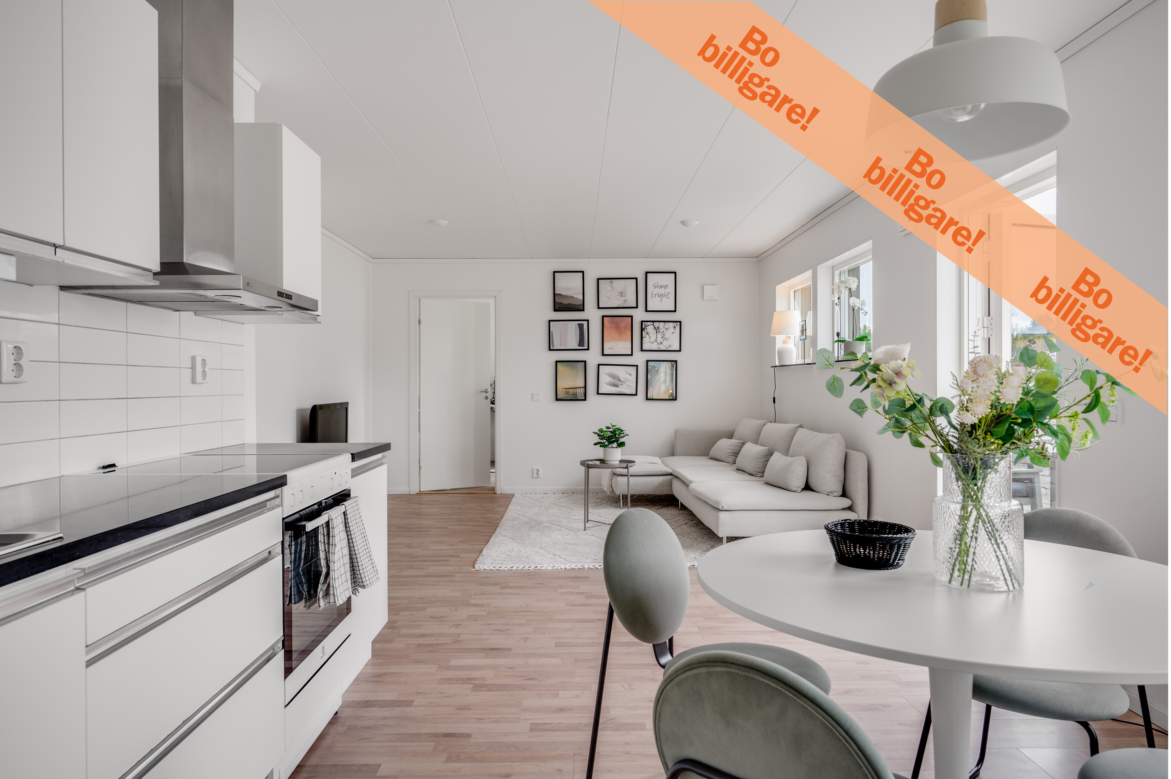 Beskrivning I ett lugnt och trivsamt område nära skolor, handel och kommunikation erbjuds denna tvårumslägenhet med öppen planlösning. Här bor du ett stenkast från IKEA Handelsplats med ett flertal butiker, och busshållplats finns i direkt anslutning. Närliggande grönområden ger möjlighet till promenader, jogging och avkoppling. Fastigheten är i två plan och rymmer lägenheter från två till fyra rum och kök. Samtliga lägenheter har antingen stenlagd uteplats eller loftgångsbalkong samt ett utvändigt förråd. Till fastigheten hör även en innergård med grönytor och lekplats.