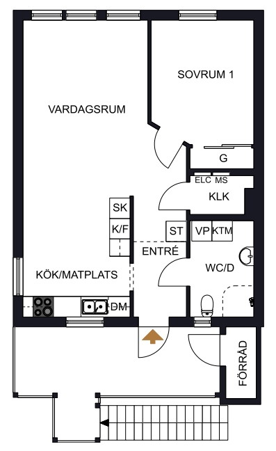 Planlösning Lägenheten ligger på plan två med balkong i söder-/västerläge. Lägenheten har en rymlig hall med förvaring, ett större sovrum och ett öppet kombinerat kök och vardagsrum. Entrén har klinker och övriga rum genomgående ek-laminatgolv. Badrummet är helkaklat och utrustat med handdukstork, tvättmaskin och torktumlare. Köket från Ballingslöv har vita luckor och ger goda arbetsytor.