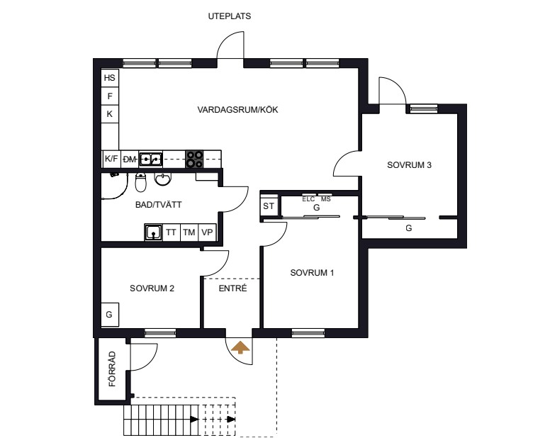 Rymlig fyra på markplan med egen entré och uteplats med trädgård. Rymligt kök med öppen planlösning till vardagsrummet. Tre rymliga sovrum samt ett helkaklat badrum med både tvättmaskin och torktumlare.