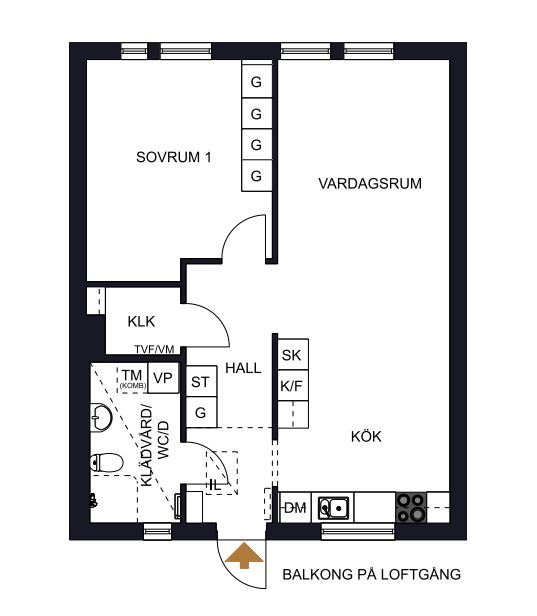 Bostaden har ett sovrum, vardagsrum och kök samt badrum med dusch.