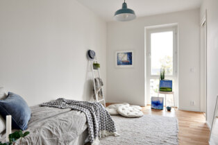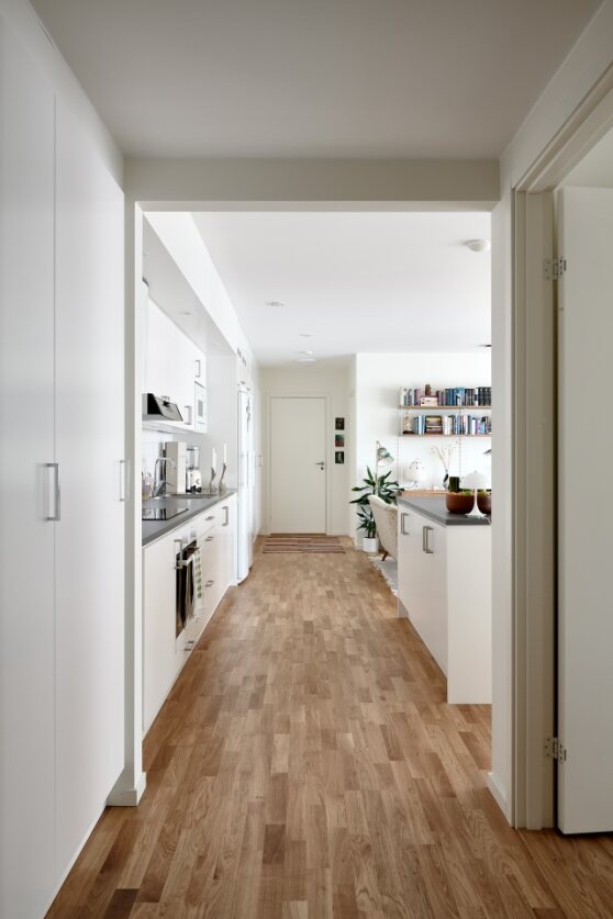 Lägenheten har stora fönster som bjuder på härligt ljusinsläpp samt en köksö.