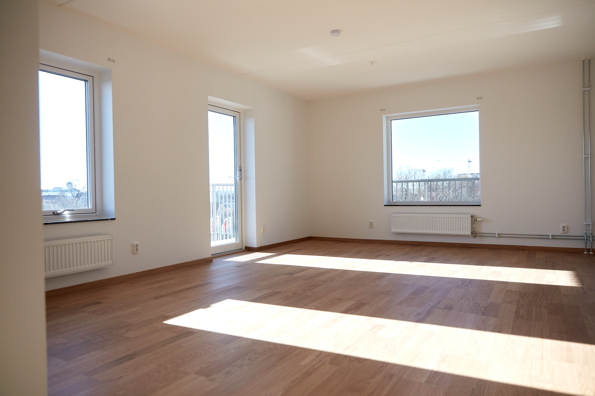 Lägenheten har en tilltalande öppen planlösning och genomgående hög standard med parkettgolv och moderna vitvaror såsom diskmaskin i kök samt kombinerad tvätt- och torktumlare i badrum. Stora fönsterpartier ger gott om ljusinsläpp och lägenheten har en väl tilltagen balkong som möjliggör bra möblering för trevligt umgänge. Vita släta köksluckor och garderobsdörrar från Marbodal.