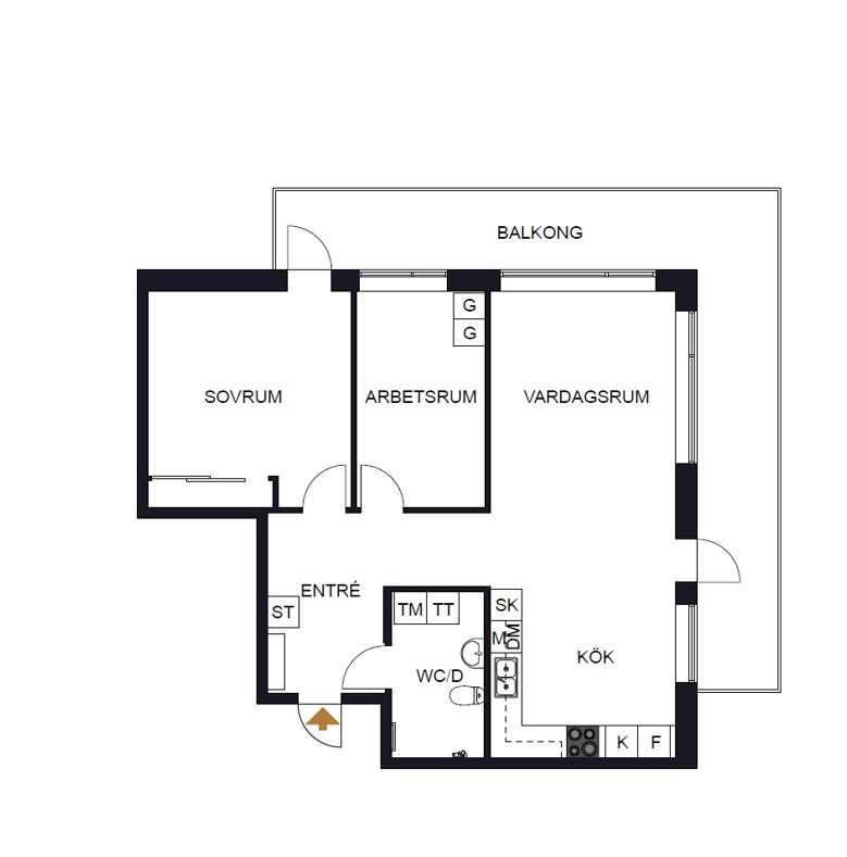 En av bostadens höjdpunkter är den generösa balkongen som sträcker sig runt hela lägenheten. Här kan du njuta av morgonkaffet och den fina utsikten.