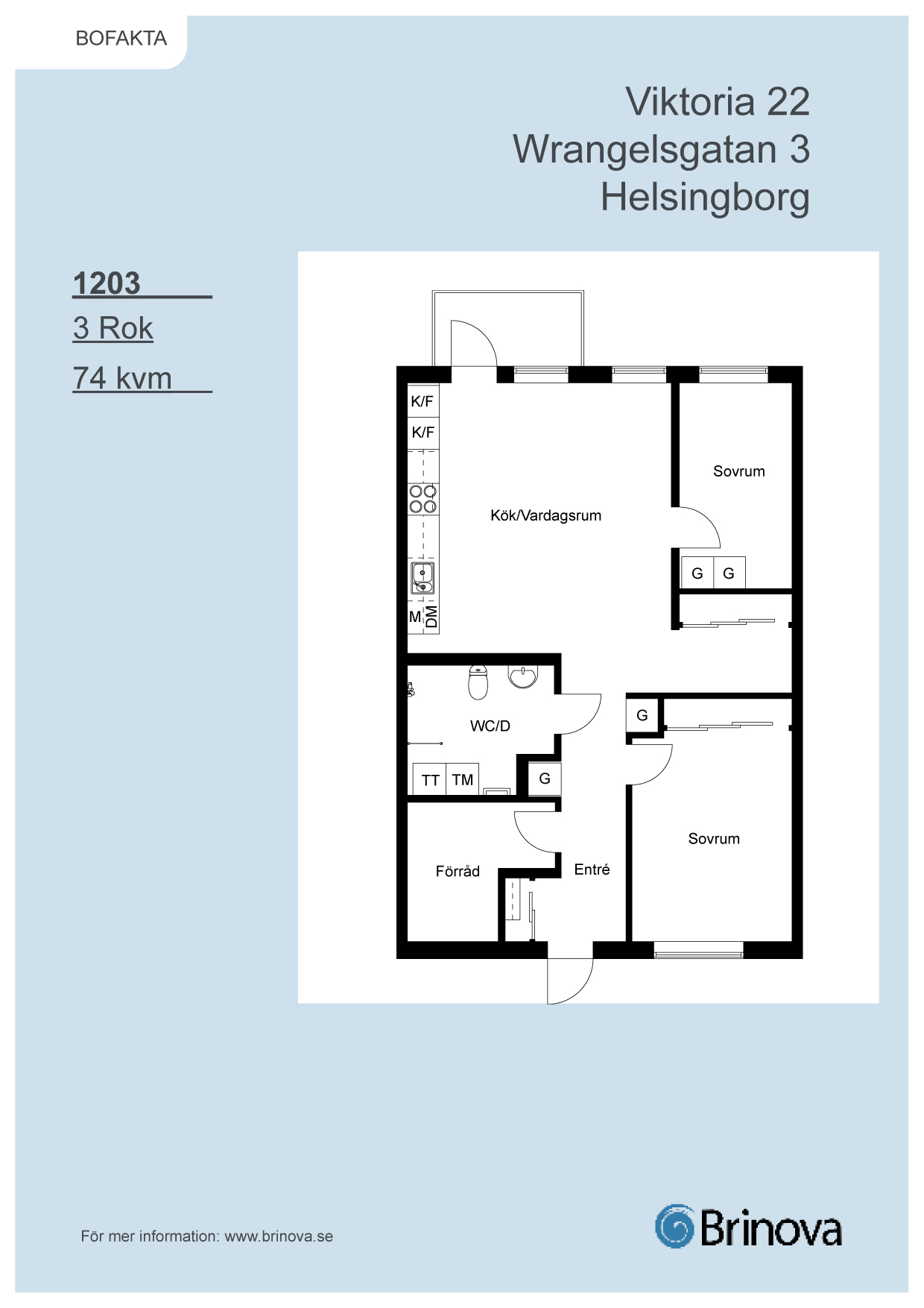 Denna välplanerade trerummare fördelat på 74 kvm passar perfekt för allt från singelhushållet till den lilla familjen. Här finns gott om förvaringsytor och trevligt med balkong ut från kök/vardagsrum.