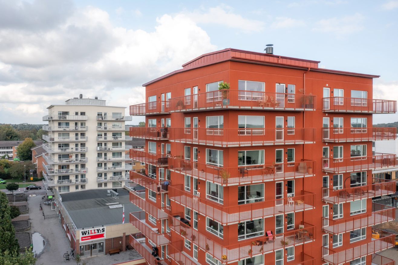 Köket från Ballingslöv har vit inredning och grå bänkskiva i sten och är fullt utrustat med bland annat integrerad diskmaskin och inbyggda vitvaror. Vardagsrummet rymmer både soffgrupp och matplats och har utgång till den generösa balkongen som löper runt hörnet på byggnaden. Balkongen nås även från sovrummet, som har plats för dubbelsäng och är utrustat med skjutdörrsgarderob.