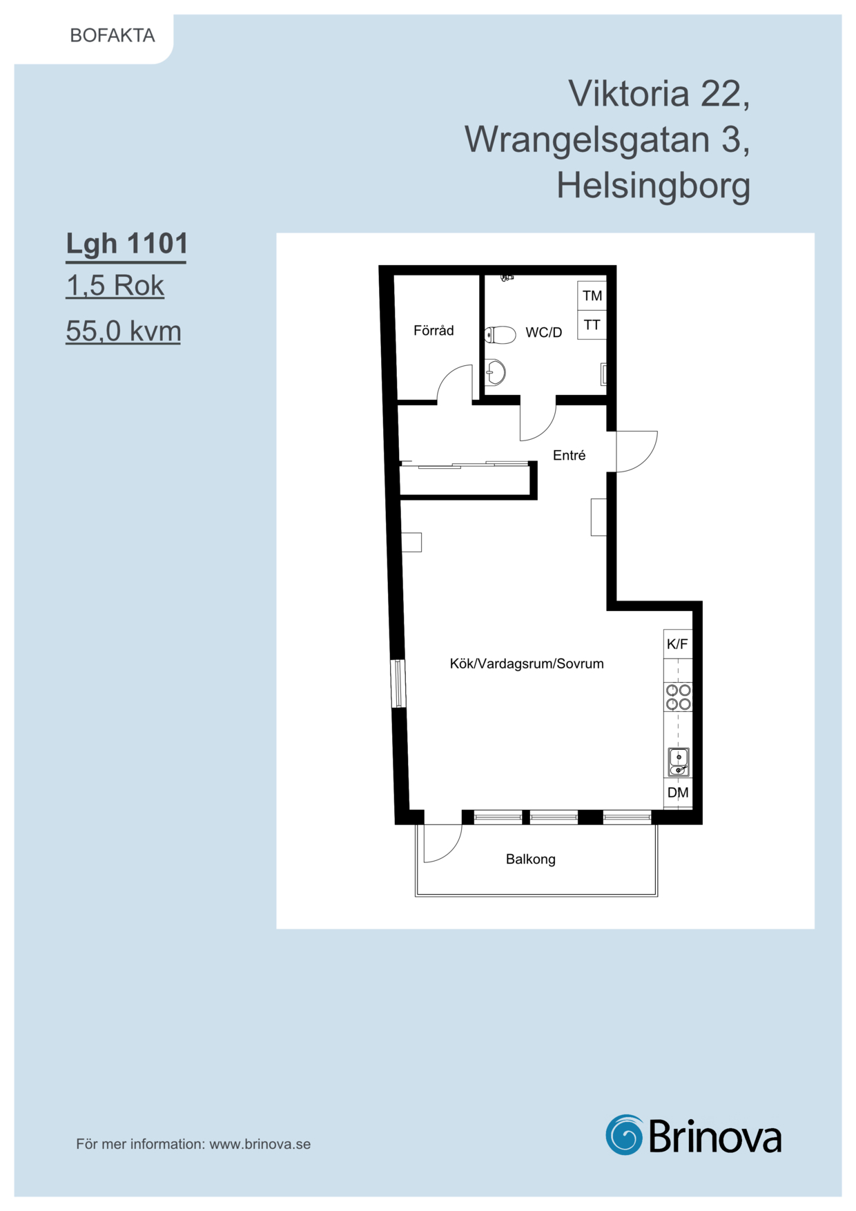 Bostaden om 55 kvm erbjuder en öppen och välkomnande planlösning med 1,5 rum. Från sällskapsytorna nås en härlig balkong i västerläge som ger fint eftermiddags- och kvällsljus. Köket är fullt utrustat med diskmaskin och har stilrena, tidlösa materialval. Det helkaklade badrummet är utrustat med både tvättmaskin och torktumlare för extra bekvämlighet i vardagen.