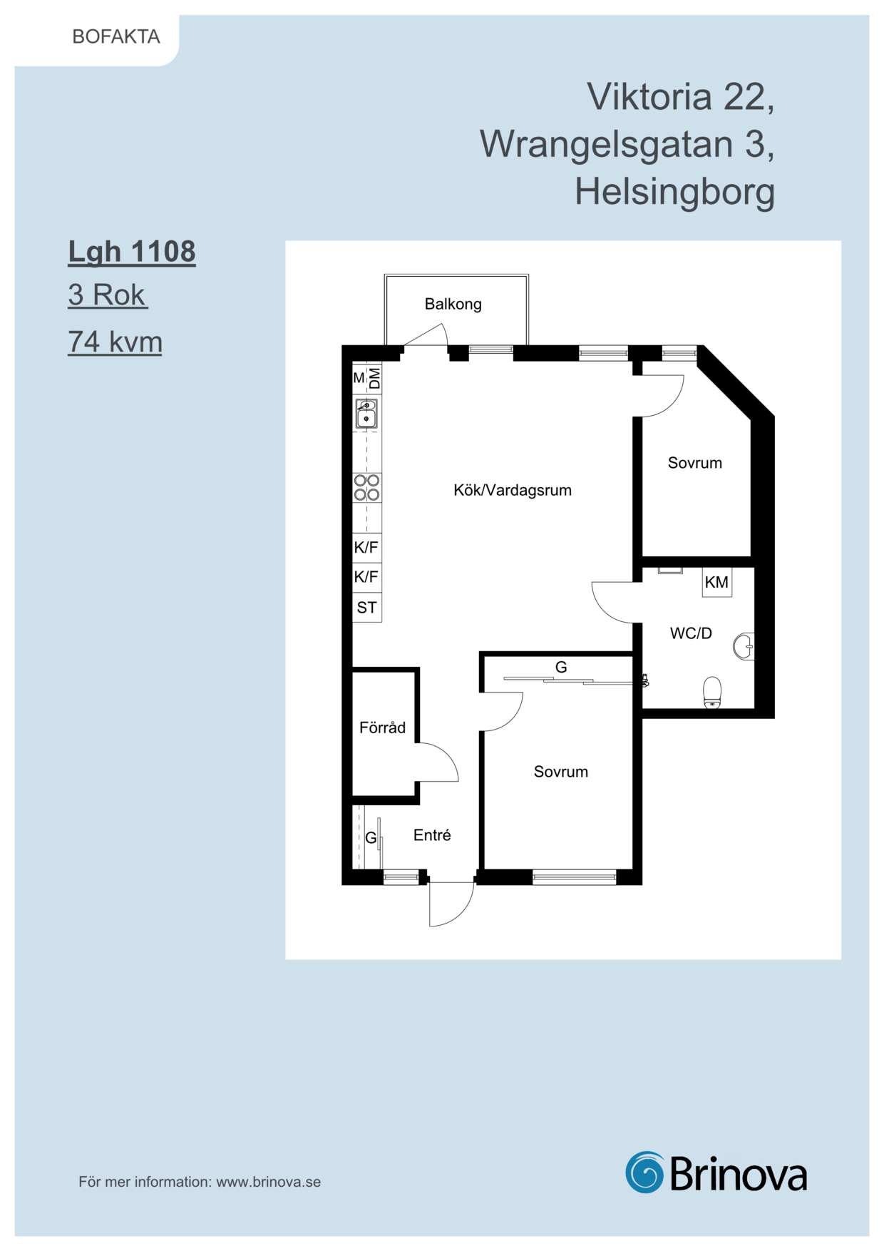 Mysig trerumslägenhet med balkong i härligt söderläge fördelat på 74 kvm. Genomtänk planlösning med öppna ytor. Invändigt förråd kompletterar garderoberna i det större sovrummet.
